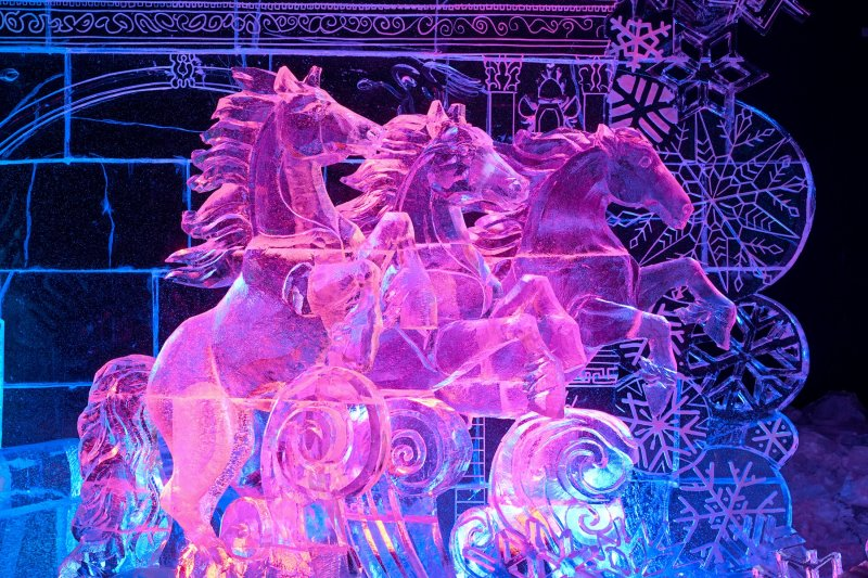 Создание скульптур доверили лучшим скульпторам из 12 городов России и Казахстана. Лед в Петербург доставили из Мурманской области и Пермского края.